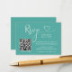 Modern Calligraphy Heart-skript Minimalist Simple Bröllop OSA Card med din QR-kod. Teal Background.