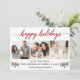 Modern Calligraphy Script Glad helg 3 Photo Helgdag Card innehåller Watercolor Holly Berries - Red Script