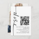 Modern Calligraphy Photo QR Code-Bröllop OSA, som bifogas dina inbjudningar, är OSA i en inställd elegant-calligrafi roterad och till lämnat, med ditt meddelande till högerna. Anpassa enkelt resten av texten till dina egna uppgifter och ersätt provet QR-kod med din egen genom att helt enkelt ändra exempelURL:en med din egen som kommer att genereras automatiskt. Byt ut exemplet bild på baksidan mot ditt eget.