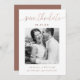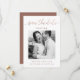Den moderna Bröllop spara datum har en vacker färg-kalligrafi av koppar och ett foto med en solid terracotta-brun rygg.