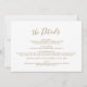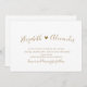 Modern elegant skriver vit och guld Allt i ett bröllopsinbjudningskort. Förbättra firande med en sofistikerad svart typografisk design, som är försedd med ett snyggt chic-kalligrafi-skript och en handdragen kärlek-hjärtaccent i vitt och guld. Baksidan av den moderna inbjudan innehåller all nödvändig "bröllop-information" som du normalt skulle se på separata kort i bröllop-paketet. Den här moderna budgetens allt-i-ett-bröllopsinbjudan innehåller mottagning, inkvartering, OSA bröllop webbplats. Enkel att anpassa. Gör en varm och välkomnande atmosfär så att dina gäster din speciella dags glädje. Beställ nu och gör bröllop firande verkligen oförglömligt!