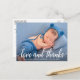 Modern Calligraphy Script Nyfödd bebis Kärlek och tack Photo Tack Postcard - vitt skript