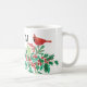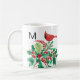 Spread the holiday cheer with this modern male cardinal with holly and custom monogram mug in red and green on a white background with a modern black monogram on front and back. Makes a great Christmas gift or stocking stuffer with a personal touch. Designed by © Tim Coffey.