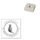 Modern rustik returadress frimärke perfekt för kattälskare! Den vackra illustrationen av en katt som visar sig på baksidan placeras mitten i den rustiska rundandningen. Familjen namn och adress beter sig omsorgsfullt utanför i en modern typografi.