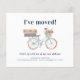 I've Moved Modern Change of Address Moving Announcement featuring a watercolor feminine bicycle with a flower basket and luggages. Perfect to let friends and family know about your new address and where the likely housewarming party will happen. Add your new address by clicking the "Personalize" button.