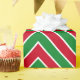 Denna moderna, breda schevron rand är i rött och grönt, med en tunn vit linje som skiljer de stora ränderna åt.