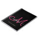 Modern, trendig, giftigt svart och shock rosa personlig med monogrammad spiral-dator. Den här enkla eleganten har vit kursiv hand som skriver ut namn med vita dekortecken och ett enormt handskript i shock rosa eller djupt rosa färg på svart bakgrund. Den här feminina, söt bärbara datorn är en perfekt presentidé för företag, professionell, skola, födelsedagsfest, bröllop och alla party eller tillfälle för någon som gillar giriga och moderna stilar. Kontakta designern om du behöver hjälp eller matchande objekt.