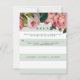 Svarskort att skicka tillbaka till bruden för en korrekt restaurangbokning. Om du inte behöver välja menyalternativ, lämna då den raden tom. FÄRGPALETT: mintgrön och vit med gröna, korall- och rosa rosor DESIGNKOLLEKTION: Matchande bröllopsinbjudan produkter. Med ett chic och trendigt desigtemne med breda ränder tar denna inbjudan retro vintage till en samtida trendstil. Varje textlager alternerar mellan mintgrönt och vitt för en enkel men ändå fantastisk effekt. Varje antikk roselement klipptes noggrant och färgmatchades för en vacker, söt och feminin layout. Djärvt grafiskt, men ändå stilrent och modeframtida. Vi har en komplett produktuppsättning som koordinerar och finns tillgänglig i
