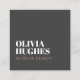 Elegant business card template with bold fonts, dark grey/golden brown/white colors.