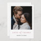 Den här chicen är ett bröllop-tack för att du har en elegant, minimalistisk och modern design. Framsidan har ditt första namn under ditt favoritfoto och ett "KÄRLEK och THANKS"-meddelande med en slående blandning av två distinkta typsnitt, med "och" i ett lätt, flytande skript mellan de övriga två orden, som ligger i övre fodral med ett djärvt och skarpt utseende.Formgivningens "KÄRLEK och THANKS"-del är i en elegant av brännskador. Du kan inte ändras. Men vi erbjuder också en version av detta kort separat tillsammans med denna text i guld och även en svart version, så kontrollera även dessa. När du redigerar framsidan för att visa ditt eget namn kan du ändra färg i den texten till något annat än standardsvart enligt din smak. På baksidan har vi satt bakgrunden som öppen, så att färg från pappra helt enkelt blir som färg. Du kan välja ett färg för bakgrunden om du vill. Standardtexten färg på baksidan är mörk grått, men du kan ändra detta om du föredrar ett annat färg. Vi har satt upp lite exempeltext på baksidan så att du kan ersätta med ditt eget meddelande när du vill, men känn inte begränsad av det här. Om du föredrar att ta bort vår provtext helt och hållet och behålla tillbaka den helt tom så att du i stället kan skriva en handskriven anteckning på varje kort, kan du göra det. Eller så kanske du vill ersätta vår text med ditt eget tacksamhetsbudskap och din egen stängning och sedan lämna underskriften till namn när du får korten. Kom ihåg att ta bort all text från provet/platshållaren på båda sidor och även vårt exempelfoto i fodral! Vi har valt projektionsyta i stället för halvglöd som standardval, eftersom det är väl lämpat att skriva ditt eget budskap på och inte smiter. Man kan naturligtvis ändra detta till halvglöd, eller man kan överväga att uppgradera till något med ett struktur som till exempel Zazzles "Laid" eller "Felt White", som kan ge en känsla av värme och djup. Vi hoppas att du kommer att njuta av att experimentera med olika aspekter av den här snyggten, tack vare ditt kort och gör det unikt för dig med den intuitiva designen verktyg och din inspiration!