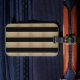 modern chic, geometrisk svart och guld rand bagagebricka