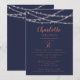En anpassad 50-årsfirande inbjudan med en lättanvänd mall för anpassning. Denna moderna chic-design har glödande rosa strängljus på en marinblå bakgrund. Med förnamn och ålder i en kalligrafisk teckensnittsstil. Klicka på knappen för anpassning och använd designverktyg för att ändra teckensnittsstil och färg för att skapa en ännu mer unik inbjudan.