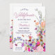 En liten vildblomma är på väg! Elegant modern sommarblomma i vår med söt vild blomma och kalldusch för babydusch med ett modernt kalligrafi-typografi med rött, lila, rosa, terracotta blommor på vitt