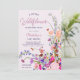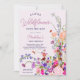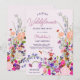 En liten vildblomma är på väg! Elegant modern sommarblomma i vår med söt vild blomma och kalldusch för babydusch med en modern kalligrafitypografi med rött, lila, rosa, terracotta blommor.