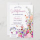 Vår lilla vildblomma blir 1! Elegant modern sommarblomma i vår med söt vild blomma och penselskript först födelsedagsfest inbjudan med en modern kalligrafitypografi med rött, lila, rosa, terracotta-blommor.