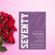 Bär elegans och fira sju decennier i livet med vår moderna Chic Lila 70:e födelsedagsinbjudan! Med en elegant och sofistikerad design med en liten bit regal lila anger inbjudan perfekten för en snyggt firande. Anpassa med din händelseinformation om du vill ha en personlig som återspeglar ditt unika stil.
