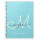 Modern, trendig flickig ljusblå och vit anpassad personlig monogram spiral anteckningsbok. Denna enkla eleganta design har ett kursivt handstilat namn med svallar i grått och ett stort handskrivet monogram i vitt på ljusblå, akvatisk eller ljus turkos bakgrund. Denna feminina, snygga anteckningsbok är en perfekt presentidé för arbete, professionella, skola, födelsedagsfest, bröllop och alla fester eller tillfällen för någon som gillar flickig och modern stil. Om du behöver hjälp eller matchande föremål vänligen kontakta designern.