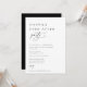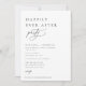 Modern chic minimalistisk, lycklig för alltid-fest inbjudan. Svart färg typografi med vit färg bakgrund på framsidan och matchande svart färg baksida.