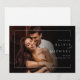 Minimal bildskärmskort i bröllop spara datum har modern chic ram och sans serif-teckensnittsinformation med ett par foto, elegant och enkel, underbar för minimalistiskt modernt bröllop. Visa alla matchande biet i samlingen.