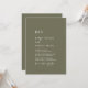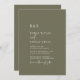 Denna moderna chics oliv grönt bröllopsinbjudan med monogram är perfekt för ett modernt bröllop. Skogsodlingen har en unik och snyggt bohemisk typografi i en minimal grönt av skogsskogen i färg. Anpassa din monogrammade inbjudan till initialer.