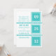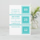 Friska och enkla Moderna Chic-rutor Spara datum-anmälan i turkos med en geometrisk fyrkantig design och textrutor för att ange dagen, månaden och året för din bröllop. Denna moderna design är perfekt för ett par som vill ha en ren och ändå stilren anmälan som informerar sina vänner och familjer om deras kommande bröllop. Lätt att anpassa, lägg bara till detaljerna om ditt bröllop i de fält som tillhandahålls. Klicka på "Anpassa"-knappen för att ändra teckensnitt eller textfärger.