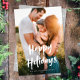 Den här eleganten och det moderna fotokortet i helgdag har ett foto från fullt (även kallat fullt-utfall), ett modernt skript hälsning som säger "Glad helg" och enkel typografi. På baksidan av kortet finns ett koordinerande grått- och vitt snöflingmotiv (du kan också lägga till ytterligare ett foto och/eller text på baksidan). *Script hälsning och backer färg är anpassade!