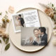 Vi presenterar vår "Elegant Chic Script Heart Wedding 2 Fotos" – ett sofistikerat och personligt sätt att fira din speciella dag. Denna design har ett elegant skript hjärta-motiv, utrymme för två foton från din bröllopsdag, anpassade namn med ett hjärta i mitten och ett personligt meddelande.