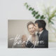 Modern Chic Script Hjärtformad Bröllopsfoto Tack Kort