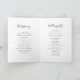 Modern minimalistisk bröllopsprogram har handskript och snyggt sans serif-teckensnittsdetaljer, i svart och vitt färg, enkelt och elegant. Underbar för det moderna klassiska bröllop, rent formellt bröllop, elegant minimalistiskt bröllop. Visa alla matchande biet i samlingen.