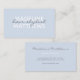 Affärskortet Modern Chic Pastel Blue Hair Stylist Script Namn. Anpassa den här ljusa pastellblått namnteckning monogrammat affärskort med trendigets skripttypografi. Anpassa med din affärsinformation och kontaktinformation. Perfektens gåva till henne, dekorpresenten för kontoret, presentgåva till designer, hårstilist, makeup artist eller annan salon professionell.