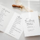 Detta moderna bröllopsprogram med svart och vit chic är perfekt för ett enkelt bröllop. Den minimalistiska boho-konstruktionen har en strålande unik och snyggt bohemisk typografi i minsta möjliga svarta och vita.