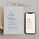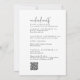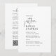 Denna moderna, chic svarta och vita QR-vigselinbjudan för helgens aktiviteter är perfekt för ett enkelt bröllop. Den minimalistiska boho-designen har rustik unik och stilfull bohemisk kalligrafi i minimal ren svart och vit färg. Spara papper genom att inkludera helgens aktivitetsschema på baksidan av bröllopsinbjudan istället för på ett separat instickskort. Inkludera en QR-kod så att dina gäster kan kontrollera er bröllopswebbplats eller enkelt svara online.
