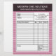 Modern chic - mjuk rosa och tunna, vita rand-boutique-orderblanketter som du kan anpassa genom att lägga till namn i ditt företag, din webbplats och din kontaktinformation. Den här professionellen är en perfekt för att befordra din skönhetsbutik i mode eller online.