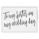 Ett modernt, chic och söt kalligrafkort stil "Till min syster på min bröllopsdag", perfekt till ge på din bröllopsdag.
