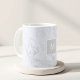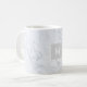 Anpassningsbar-designat kaffe mugg med personlig monogram/början på modern och chic, vit marmor med mönster-bakgrund.