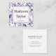 Detta moderna chinoiseriska affärskort är perfekt för småföretagare, konsulter, stilist och mycket annat! Den blå och vita djungelns chinoiserie-design har vilda djur av apor och leoparder bland botaniska blommor och löv som accentueras med viskartat mönster. Du kan ändra färg och typsnitt i avsnittet Redigera design. Gör ett intryck med den här utformningen. ©Marisu Valencia
