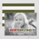 Modern julfotoport med rött och grönt med fet helgdag övertäckning. ELKE CLARKE© Versatile design med ord "God jul" i rött och grönt. Lägg till ditt bild, ditt namn och år, i ett vanligt typsnitt för typografi och skicka till familj och vänner för helgdagarna. Grönt och vitt rand mönster på baksidan.