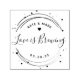 Anpassningsbar-designat bröllop gynnar självinkande frimärke med modern elegant, cirkulär linjer och prickar "Kärlek brinner"-design. Anpassa med brid- och brudgummen/parets namn och bröllop-datum för en beröring av stil på bröllop kaffeplatser/bönor eller tefavörer och gåvor.