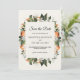 Meddela din speciella dag med detta vackert designade Spara datum-kort med livliga akvarellapelsiner och frodig grönska. Den moderna fyrkantsramen i kombination med elegant skrivstil gör det perfekt för rustika, toskanska, fruktträdgårds- eller destinationbröllop. Helt anpassningsbart med era bröllopsdetaljer för att skapa en unik souvenir som era gäster kommer att älska. Perfekt för sommar- och utomhusfiranden!