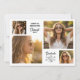 The front highlights a photo collage with the graduate’s name and class year, while the reverse includes space for event details, information, and a personalized graduation message. The modern yet simple design works perfectly for both high school graduation and college graduation celebrations.