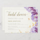 Grenar av lilak- och vattenblommor, liksom guld-fjärilar (detta är en digital effekt, inte guld) dekorerar denna elegant, den roliga moderna klassiken, boho-fjärilar och blommigt inbjudningskort för möhippan. Luxuriös men enkel, klassisk men chic, modern men tidlös.