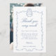 This flat wedding thank you card features a classic French Victorian blue floral frame, with a photo on the back. For more advanced customization of this design, please click the BLUE DESIGN TOOL BUTTON above! Matching items are also available.
