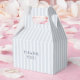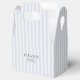 This dusty blue striped wedding favor box features soft slate vertical stripes paired with a clean minimalist layout and elegant typography. The timeless blue and white stripe pattern creates a classic and refined look, perfect for traditional weddings, outdoor garden receptions, coastal celebrations, or elegant formal events.
