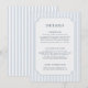 This dusty blue striped wedding details card features soft slate vertical stripes and a clean minimalist layout framed with a timeless vintage-style border. The elegant and formal design complements classic wedding invitations and works beautifully for traditional church ceremonies, outdoor garden weddings, or refined destination celebrations.