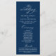 Modern Classy Elegant Wedding Ceremony Program card. It is designed with scroll accent that can be personalised with custom/ personalised text for your bridal party, ceremony details, memorial notes and thank you message, in navy blue.