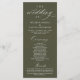 Modern Classy Elegant Wedding Ceremony Program card. It is designed with scroll accent that can be personalised with custom/ personalised text for your bridal party, ceremony details, memorial notes and thank you message, in olive green.