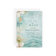 This modern wedding design features flowing watercolor waves in tranquil aqua and teal tones, paired with soft white florals, subtle seashell accents, and delicate gold details. The airy composition creates movement and depth while keeping the overall look refined, romantic, and contemporary.