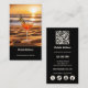 Professionell affärskort med en cocktail på stranden (eller ett eget foto om du vill). På baksidan finns en QR-kodmall och fyra medieikoner i social. Ett mångsidigt modernt affärskort för bartender eller pub eller strandkafé.