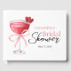 Modern och elegant bröllopsgästbok med akvarellcocktaildryck tätt med en rosa slinga och livlig kalligrafitext.
