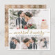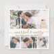 Elegant Modern Calligraphy White och Guld 4 Photo Collage Married och God jul Card. Detta mimalistiska nya julklapp med kort för nyfödda barn har fyra (4) rutnätsfotosamlingar och texten "Married and Merry" hälsning som är skriven i en vacker handskriven, snabb swash-svan-typsnitt i guld och vitt. På baksidan av söt snowy snöflingor på ytan av rävsaxar från guld. Söt hälsningskort enkelt att skicka hälsning till familj och vänner för din första jul som make och hustru i Julhelgen.